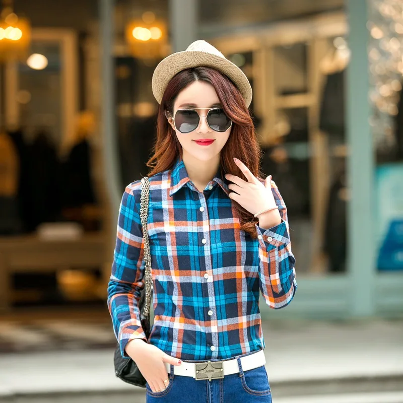 2019 New Fashion Women Plaid Shirt Flannel Long Sleeve Casual Women Blouses Shirt Ladies Plus Size Cotton Blusas Tops Blouse,Women's Shirts 2018 Autumn and Winter female shirt plaid shirt women slim long sleeve cotton Blouse top female outerwear, Women's Shirts 2018 Autumn and Winter female shirt plaid shirt women slim long sleeve cotton Blouse top female outerwear