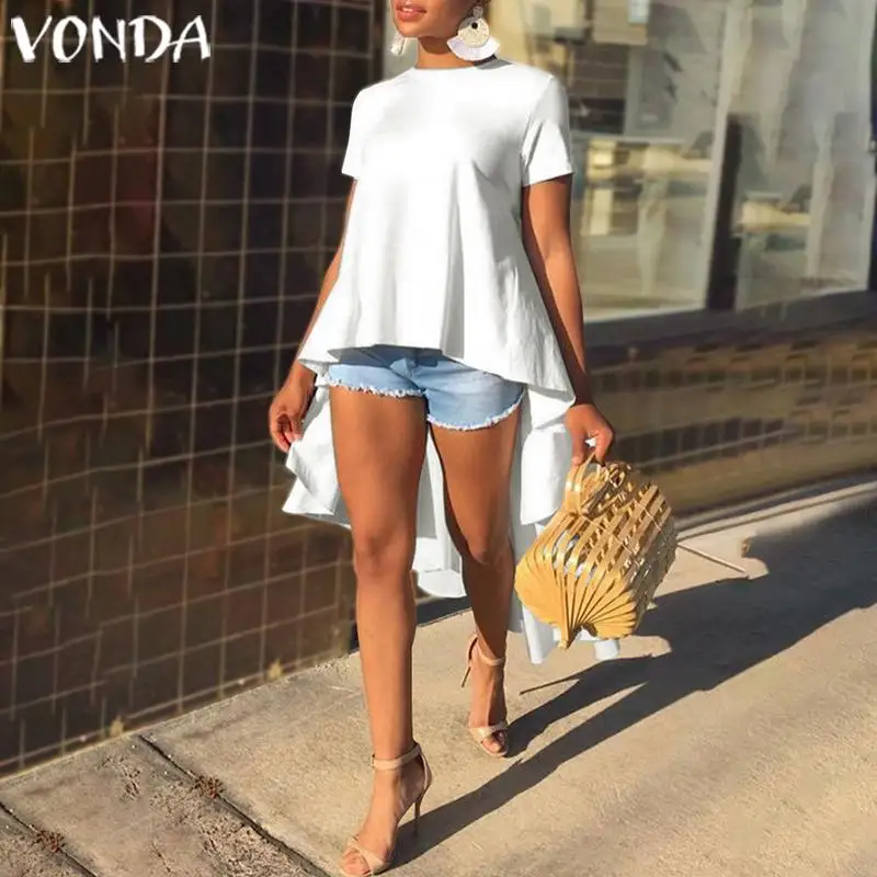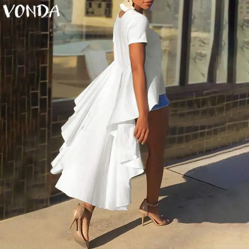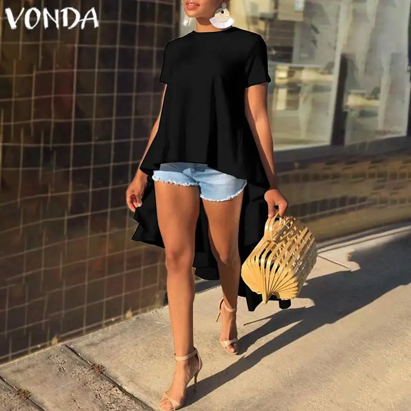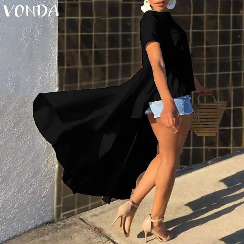 Ideal VONDA Tunic Women Blouse 2019 Casual Loose Ruffle Asymmetry Tops Irregular Hem Shirts Female Party