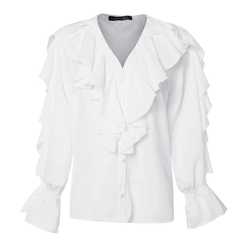 Best Women's Blouse Shirt Celmia Sexy V neck Long Sleeve Female Casual Ruffle Shirt Button Solid Street