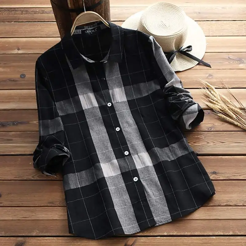 discount Blouse Plaid Checked Women Shirt Ladies Long Sleeve Buttons Down Blusas Casual Work Tops Chemise Bl