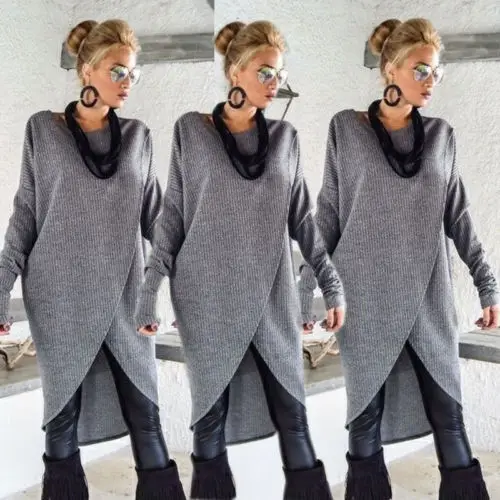 Greatest Hot Ladies Women Long Sleeve Sweater Blouse Dress Sweatshirt Dress Jumper Pullover Irregular Hem Lo