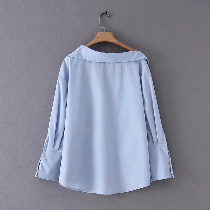 astounding 2019 new women fashion irregular turn down solid color casual blouse shirts women off shoulder femi