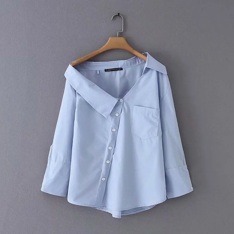 Ideal 2019 new women fashion irregular turn down solid color casual blouse shirts women off shoulder femi