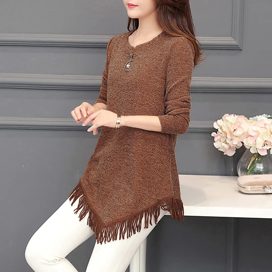incredible Autumn Winter Top Femme Vintage Tassel Tunic Blouse Women Korean Fashion Plus Size Long Sleeve Fema