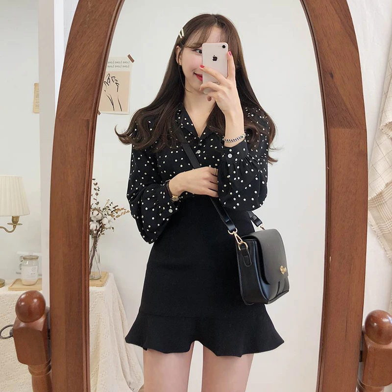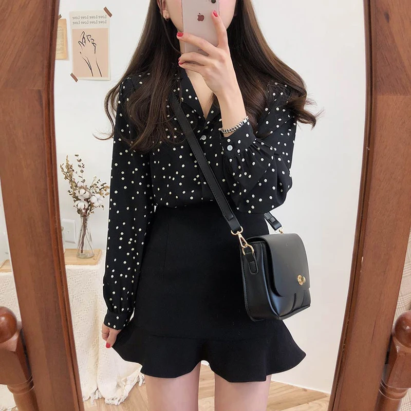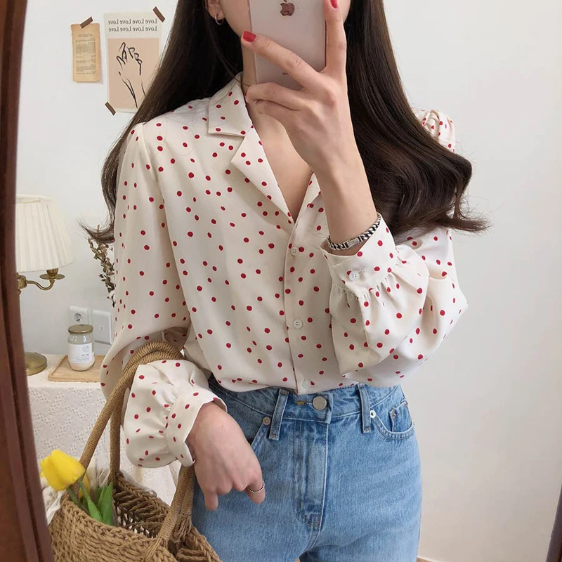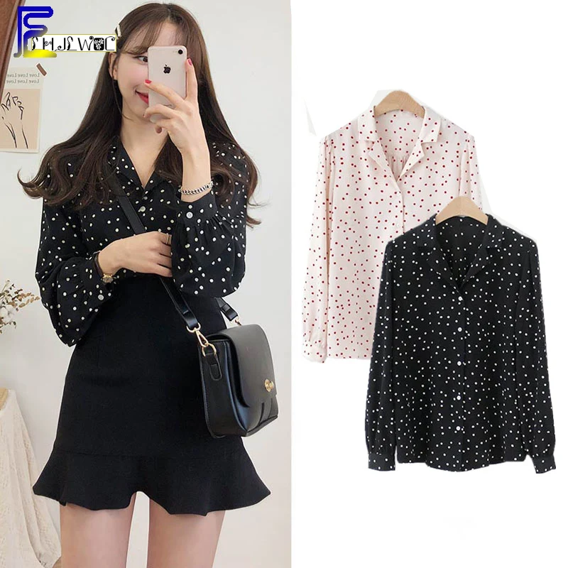 remarkable Plus Size Loose Preppy Style Shirts Blouse Women Cute Sweet Tops Polka Dot Top Korean Style Design