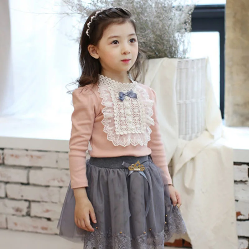 lower price lememogo Autumn Girls Printing Blouses Clothing Cotton Kids Cute Lace Long Sleeve Blouse for Fashio