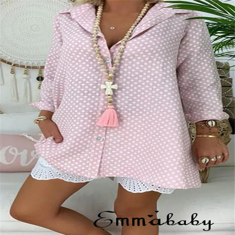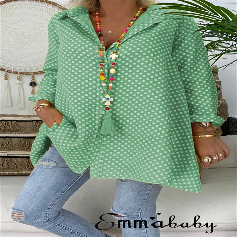 price reduction 2019 Fashion Women Ladies V-Neck Casual Blouse Long Sleeve Polka Dot Shirt Tops Shirts New Japanese