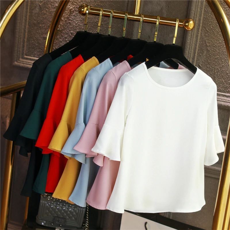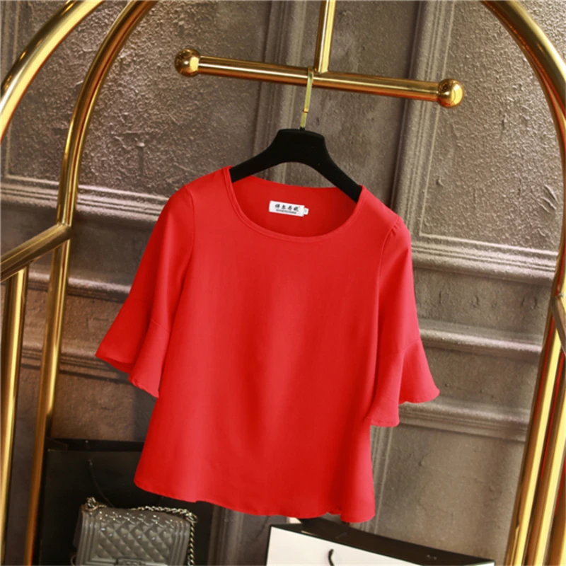 price reduction 2020 Summer obesity Chiffon Blouse Plus Size 6XL 5XL Women flare sleeve Beautiful Self-cultivati Sh