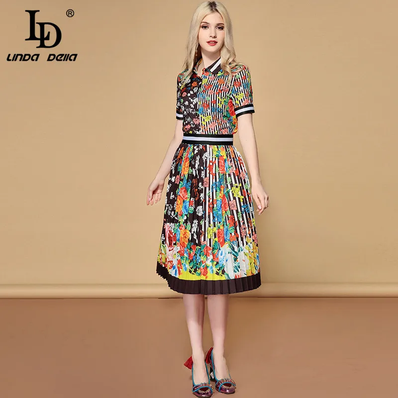 Promo LD LINDA DELLA Designer Skirts Two Pieces Set Women's Elegant Floral Printed Blouses and Vintage Pl