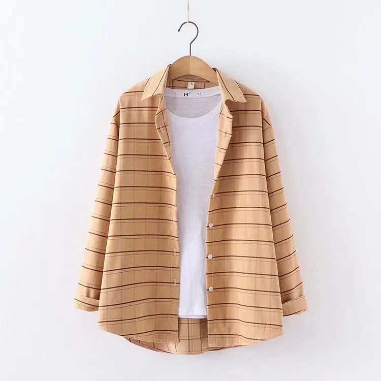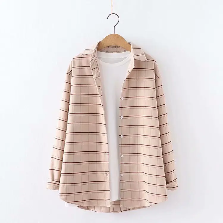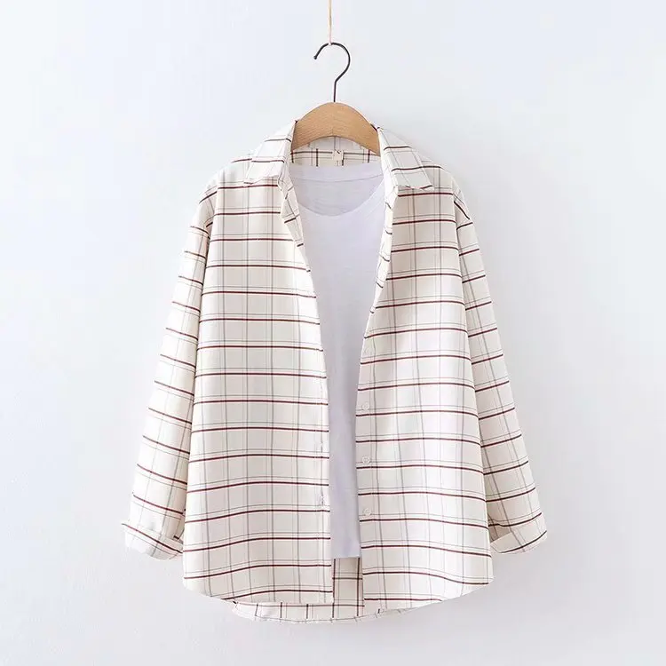 remarkable EYM Brand Plaid Shirt Women 2019 Spring New Women Blouse Cotton Long Sleeve Lady Loose Casual Shirt