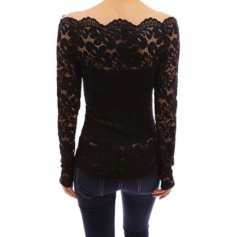 Very best ZANZEA Women Tops 2019 Autumn Sexy Blusas Off Shoulder Slash Neck Lace Solid Shirts Long Sleeve Sli