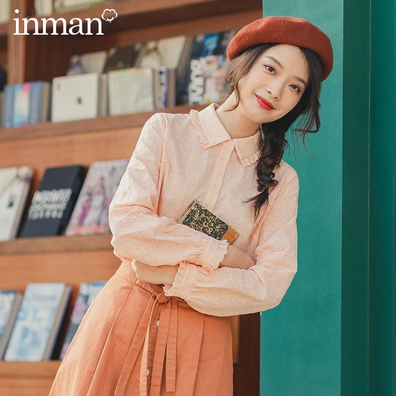 wonderful INMAN 2020 Spring New Arrival Literary Cotton Flower Turn Down Collar Age Reducing Single Breasted
