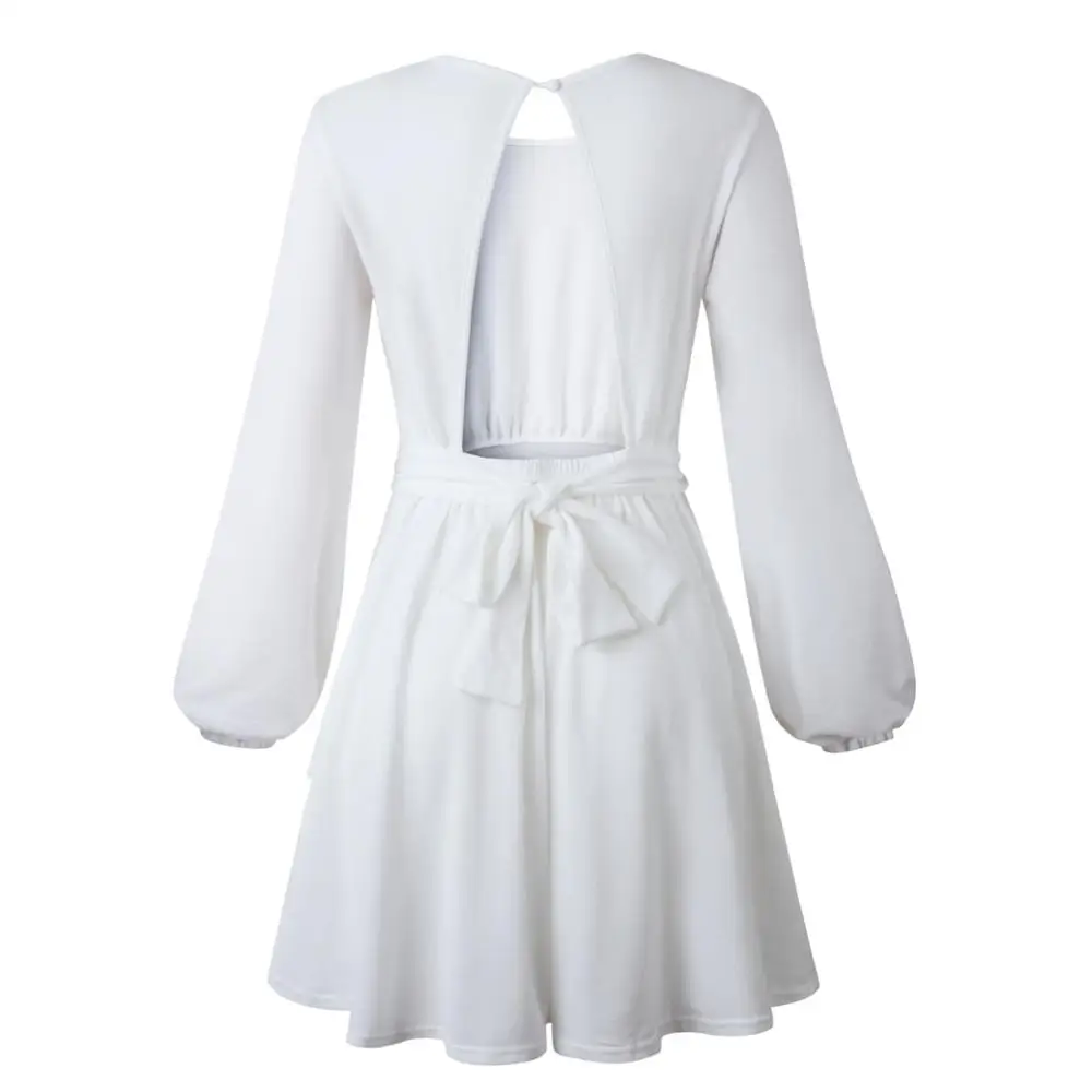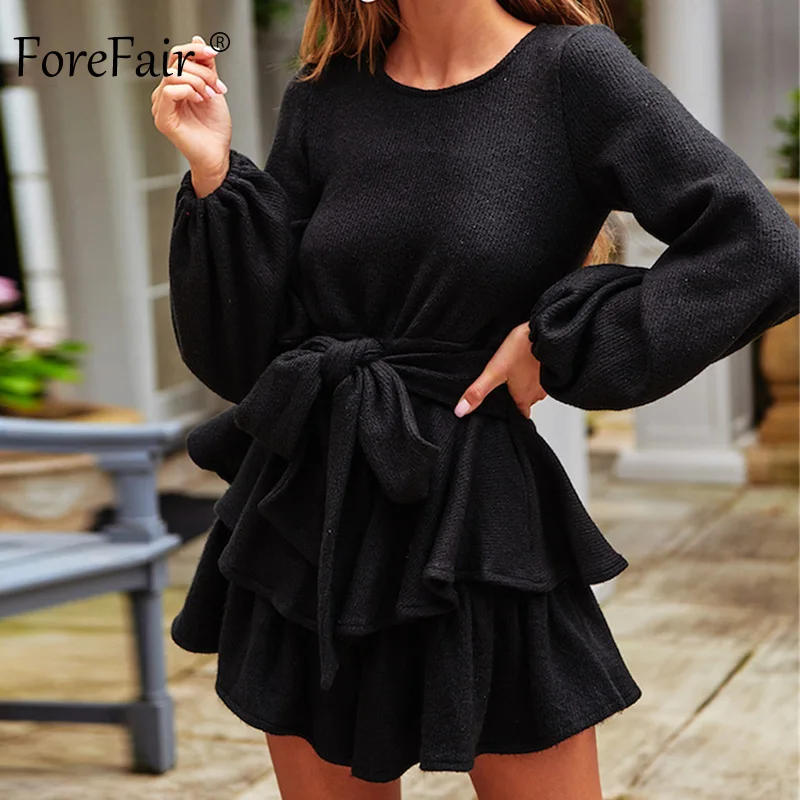 astounding Forefair A Line Tunic Sexy Ruffle Dress Long Sleeve Autumn 2019 Sashes Tied Black White Mini Knitte