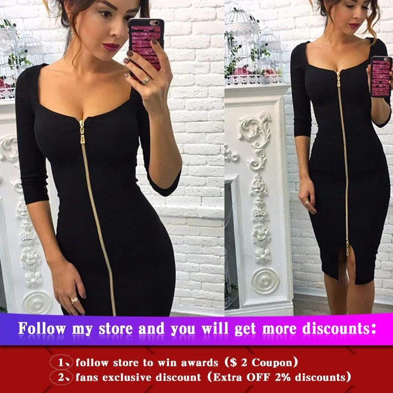Finest Lossky Women Sexy Club Low Cut Bodycon Dress Red Velvet Sheath 2020 Zipper Fashion Black Pure Sprin