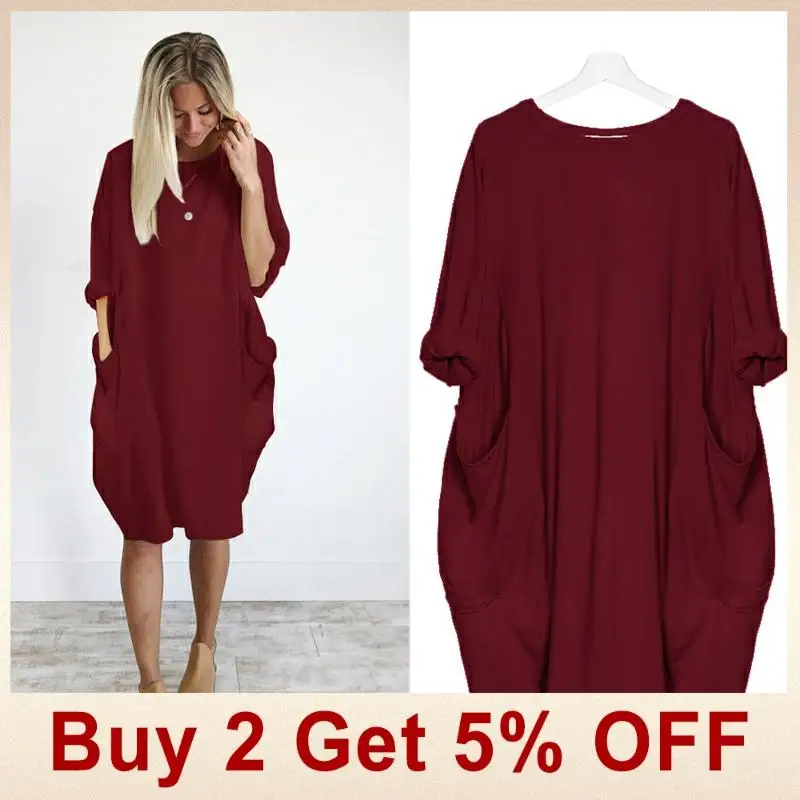 lower price Women Casual Loose Dress with Pocket Ladies Fashion O Neck Long Tops Female T Shirt Dress Streetwea