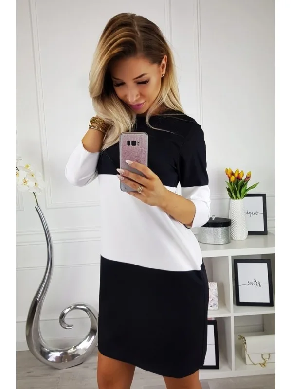 Promo LOSSKY Women's Stitching Casual Dress 2019 Sexy O-Neck Long Sleeve Color Matching Slim Dress Women'